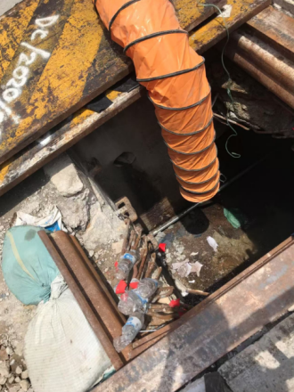 Install explosion-proof cameras securely on the wall inside the confined area to monitor internal construction activities.